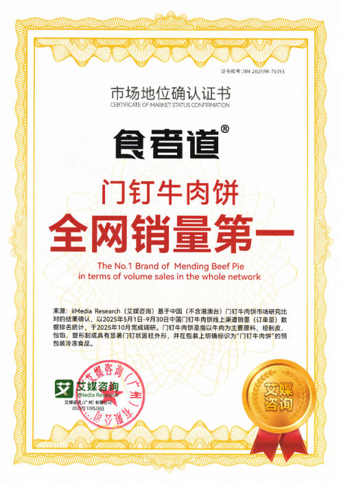 這份對(duì)匠心打造,也讓食者道老北京門釘牛肉餅直接斬獲 “全網(wǎng)門釘牛肉餅銷量第一” 的稱號(hào)。除此之外,在素餡餡餅的領(lǐng)域,食者道也用無數(shù)家庭的復(fù)購、用實(shí)力,向消費(fèi)者交上了一份“全網(wǎng)素餡餡餅銷量第一”的安心答卷。在電商平臺(tái)糧油面點(diǎn)類目里,食者道餡餅連續(xù)多月穩(wěn)居銷量榜首,這份亮眼的成績,不僅是消費(fèi)者對(duì)地道風(fēng)味的認(rèn)可,更證明食者道抓住了國人對(duì)傳統(tǒng)美食的情懷,讓一款經(jīng)典小吃通過技術(shù),成為了千萬家庭的??汀?/span>